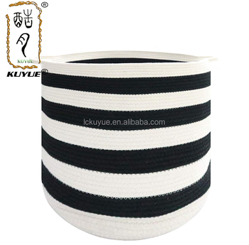 KUYUE黒ステッチコットンロープバスケット,浴室収納バスケット雑貨秘書服収納